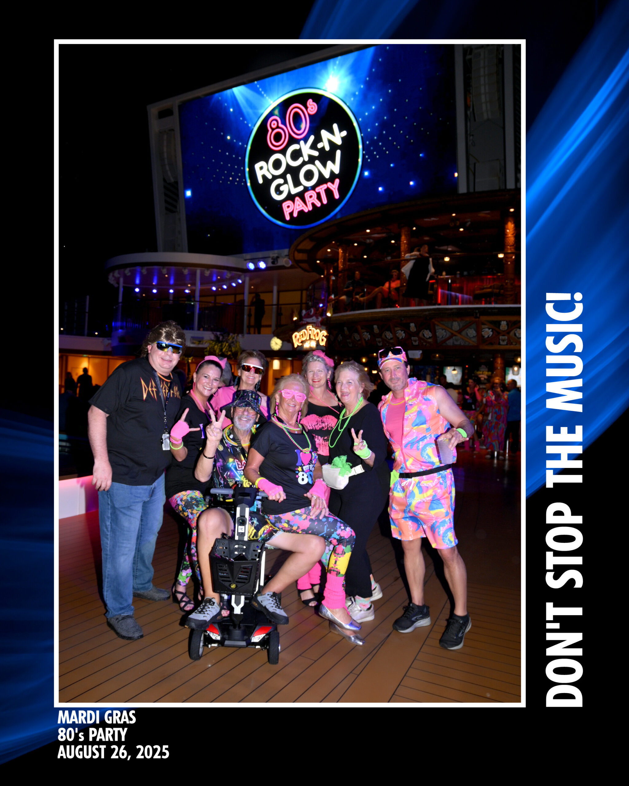 80’s Party – There will be an 80’s party one night on the cruise. The exact night varies but we will be able to get the schedule once we get on the ship. We encourage everyone to join us as we celebrate one of the best decades of music on the lido deck under the stars. Many folks (including Kimberly & I) dress up in 80’s themed clothes during this event. We typically find these items on Amazon.